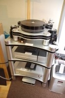 同社の新規取り扱いとなるHANSS ACOUSTICからは「イベント開幕の前日に到着したばかり」(展示説明員談)という、アナログターンテーブルやオーディオラックが参考出展されている。