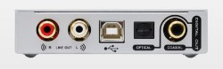 DACはWolfson社製の「WM8776」を採用。アナログ出力は2ch RCAと、ステレオフォン/ステレオミニのデュアルヘッドホン出力を装備し、ヘッドホンアンプとしても使用できる。さらに、ステレオミニのマイク入力も備えている。