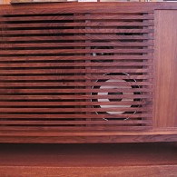 家具メーカーという特徴を活かし、リビングに置いても違和感のないデザインを実現。家具としての美しさも追求している。キャビネットの素材はオーク/アメリカンチェリー/ブラックウォールナットの3種類から選択できる。また、サランネットの代わりに、取り外しが可能なルーバーのカバーを採用している。