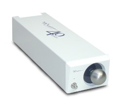 真空管12AU7を採用したバッファーアンプ「cdb40」(製品DB)のホワイトカラーモデル。1MΩの高い入力インピーダンスを実現している。周波数特性は1〜100KHz(-3.0dB時)、S/N比は90dB。全高調波歪率は0.03%以下(20〜20KHz)。RCA入力/出力端子を1系統ずつ装備している。消費電力は10W。
