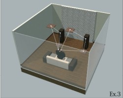 特殊素材多層レイヤー構造を採用する調音パネル。素材に約64万個の特殊金属コーティングエンボスと、約36,000個の異種金属ランダムコーティングファブリック、約2,500パターンランダム拡散構造を採用している。コンピューターでモデリングを行い、特殊素材を1つ1つヒアリングチェックしているという。
