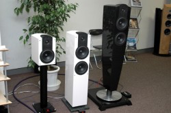 PRESTIGEは26mmのSCANSPEAK D3004 LRSトゥイーターと、新開発の165mmミックスド・ファイバーコーンウーファー2基を搭載した2.5ウェイ バスレフ型スピーカー。「LOUNGE L26」は2.5ウェイ バスレフ型スピーカーで、新開発の165mmミックスド・ファイバーコーンウーファー2基に加え、26mm Vifa社製トゥイーターを搭載する。「L6」は165mmミックスド・ファイバーコーンウーファーと26mm Vifa社製トゥイーターを搭載した2ウェイバスレフ型ブックシェルフスピーカー。