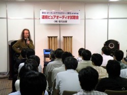 そして「これまではCDのデータをいかに忠実に取り出すかという部分に腐心してきたが、今後はエンジニアが最終決定を下した高音質なマスターデータに直接触れられるようになる」と高音質音楽配信の魅力などを解説。「パソコンでもこれだけの音が出ることをお分かり頂けたのではないか」と、デモで実例を示しながら語る杉山氏の解説に来場者も興味深そうにうなずく姿が見られた。