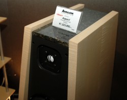 大場商事は、今年も数多くの新製品を多数展示しているが、特にAVALON ACOUSTICS社のハイエンドスピーカーが一際注目を浴びている。ブースには先日発表された682万の「Time」に加え、新製品「Aspect」も出展。