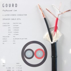 またオーディオアクセサリーブランド“GOURD"からはスピーカーケーブルの新製品2機種が登場。価格は未定。「2274」は、導体にOFC/AgA/PCOCC/OFCによる3.87sqmmの4層ハイブリット構造を採用したモデル。絶縁体にはPVC、シールドはアルミマイラーテープを使用している。