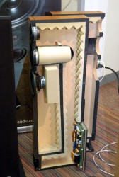 また参考出展として、PB1iとほぼ同等のクラスにラインナップされる新シリーズ「fact」のスピーカー「fact8」も登場している。スピーカーターミナルも銀メッキを施したものを使うなどこだわりが詰められており、「PB1iよりも仕上げは良いモデル」(同社説明員)とのこと。おととい届いたばかりだという本機はまだ試聴が行えないが、スッキリと聴きやすい音が魅力という。