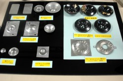 マグネシウムの冷間プレス成形技術を保有する東プレは、それらの形成技術を用いて開発された純マグネシウム・マグネ合金製振動板を展示している。振動板はViV laboratoryの「evanui signature」にも採用されている。