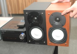 スピーカーには、大型磁気回路を採用した2.5cmソフトドーム型ツィーターを採用。ウーファーユニットには新開発の11cmウーファーを採用している。振動板はディンプル加工を施したペーパーーコーン、キャップ部にはクロス素材を採用し、適度な分割振動を持たせることで安定した低音再生を実現するという。定格インピーダンスは4Ω、最大入力は40W。キャビネットは15mm厚のMDF材を全周に採用し、四方留め構造としている。