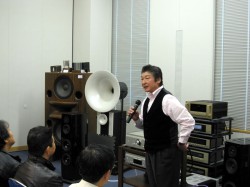 同イベントの来場者が最も充実したのは最終日、4月4日の日曜日。当日の14時30分からは、弊社刊行『季刊・オーディオアクセサリー』でも人気を博す、福田雅光氏の連載「旬の音本舗 福田屋」の出張イベントが開催された。