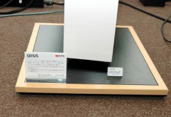 ポーカロ・ラインはarteブランドの免震オーディオボード「SEISIS(サイシス)」の免震機能の説明に力を入れる。複合素材の多層構造でできており、2層のボードをスチールボールで点接触させ、制振効果を高めている。「200kgまでたえられるのでオーディオラックごと設置することもできる。震度6程度の揺れに耐えられる仕様となっている」という。