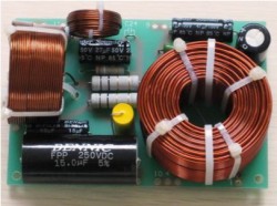 別売りのクロスオーバーネットワークは12dB/octで、大きな空芯コイルやオーディオグレードのFPPカップリングコンデンサーを採用している。