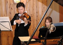今回の演奏について触れておこう。演奏者はバイオリンの田野倉雅秋さんとピアノの澤田智子さん。田野倉さんは広島交響楽団のコンサートマスターで、次世代を担う若手の名手である。澤田さんはブルガリア国立プレヴェン交響楽団、広島交響楽団等と共演するほか、ピアノ3重奏「ARTICA(アルティカ)TRIO」のメンバーとして活動中のピアニスト。演目はベートーベンのバイオリンソナタ第5番「春」、シューマンのバイオリンソナタ第1番と、2曲のソロ演奏であった。