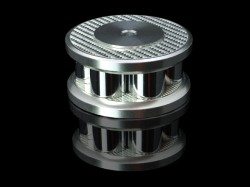 アルミニウム、真鍮、テキサリュームのハイブリット構成のスタビライザー。プラッター回転に伴う不要振動を減衰し音溝のトレースを向上させている。