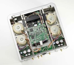 シャーシは各回路ブロックをセパレート化。VRDS-NEOトランスポートメカニズムはセンター配置とし、5mm厚スチール製ボトムシャーシにダイレクトに固定。ESOTERIC独自のピンポイントフットで3点支持としている。シャーシ内部は5分割のダブルデッキ(2階建て)構造とし、各回路ブロックを専用のコンパートメントに収めることで回路同氏の相互干渉を抑えている。各チャンネルを分離した2枚のオーディオ基板は、背面端子に最も近い上部コンパートメントの最後部にマウントし、信号経路の最短化も図った。またオーディオ用電源回路やトランス類はスチール製内部シャーシプレートでオーディオ基板からアイソレートされている。
