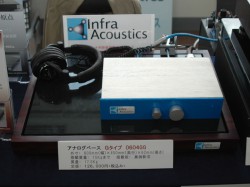 ネットスタッフは、Infra Acousticsブランドの制震機器「アナログベース」を展示。前回までと同様に装置のON/OFFによる効果の違いを比較できる仕掛けを用意している。