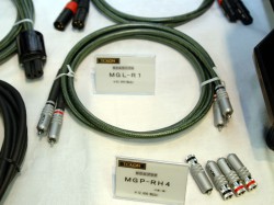 ティグロンのブースには、スピーカーケーブル「TCS-2.5W」やRCAケーブル「MGL-R1」、そしてRCAプラグ「MGP-RH4」やインシュレーター「M1」など様々な製品が所狭しと並ぶ。