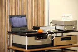イベントでは、スピーカーに「TAD Reference One」を、パワーアンプには「TAD-M600」を使用。これにフェーズテックの「HD-7A」や新製品のルビジウムクロック「HD-7Rb」を組み合わせ、PC内のハイレゾ音源を再生した。