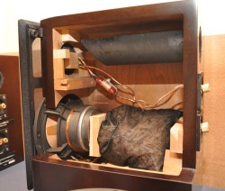 キャビネット内部には吸音効率の高いメープル材のウッドチップが配置されており、重厚な低域と解像感の向上を実現している。