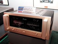 ステレオパワーアンプでは12月初旬発売予定の「P-6100」(945,000円/税込)に注目が集まっていた。モノパワーアンプのフラグシップ機「M-6000」のステレオバージョンで、「パワーMOS FET」をそれぞれ8パラレル・プッシュプル駆動で採用。700W/1Ω(音楽信号に限る)、440W/2Ω、220W/4Ω、110W/8Ωの出力を実現している。