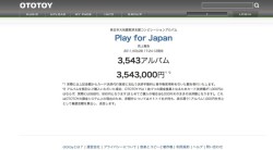またOTOTOY内に設けられたPlay for Japan特設ページでは、これまでの販売額を確認できるページを設けている。3/28 18:50現在で3,543アルバム、3,543,000円の売り上げが報告されている。