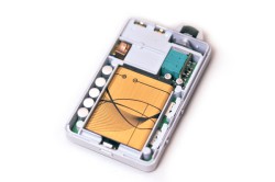 内蔵のリチウムイオンバッテリーは約200分の充電で最大約10時間の駆動が可能。交換もできる。また付属品としてシリコンケースとEband(ブラック)が用意されている。