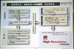 “HRシリーズ”は、ハイレゾ音源時代にマッチしたハイクオリティ再生を実現するため、「理論とデータ測定による裏付け」と「試聴の繰り返し」による作り込みを行うこと、ハイレゾ音楽の「高音質音楽のコンテンツ」をリファレンスとした試聴・音決めの確認を行うこと、をコンセプトに開発された。同社の濱田社長は「クリプトンは2011年を“アクセサリー元年”として位置付けている。新技術・新思想を導入し、優れたアクセサリーを提供していきたい」と語る。