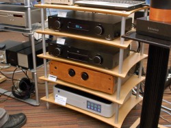 デジタルプリメインアンプ「X-PM10」を始めとするN modeブランドの製品を並べる同社。M2TECH社のUSB D/DコンバーターhiFaceの回路を組み込み機能強化した「X-DP1-HF」とパソコンをつないでの展示なども行っている。