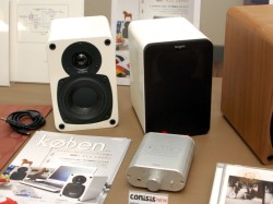 ポーカロ・ラインは、デンマークtangent社製品のスピーカー「EVO-E5」などを展示。同スピーカーをコニシス研究所のUSBオーディオアンプ「GIZMO 0215」と組み合わせたデスクトップオーディオシステム「koben」も用意している。