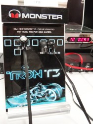 ディズニー映画「Tron : Legacy」とのコラボレーションしたMONSTERのカナル型イヤホン「Tron T3」など、MONSTERの人気イヤホン、ヘッドホンのラインナップが一堂に試聴できるブースになっている。