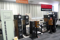 アルファメガのブースは、Vienna Acousticsの新スピーカー「MOZART GRAND SYMPHONY EDITION」と「HAYDN GRAND SYMPHONY EDITION」をメインに出展している。