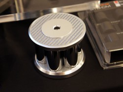 また、実際にレコードを再生しながら、レコードスタビライザー「STB-MS」と「STB-HW」、およびターンテーブルシート「BR-ONE」のデモも実施。興味深そうに音を確認する来場者の姿も見られた。