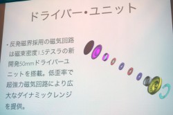 「同社初のフラグシップヘッドホン」という本機。同社が実績を持つ密閉型で、マグネットを2基搭載した磁束密度1.5テスラの新開発50mmドライバーを搭載。低歪率な強力磁気回路により、広大なダイナミックレンジを実現するという。