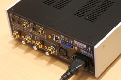 入力端子はUSB、AES/EBU、同軸デジタル、光デジタル2系統、アナログRCA端子を、出力端子にはヘッドホン端子2系統、アナログRCA端子を用意する。「こういった製品だと、なぜXLR端子を乗せなかったの?とよく訊かれるが、そこは我々も非常に迷った点。XLRを乗せるにはリアパネルの面積が足りなかったこと、そして、XLRを乗せた場合アナログ入力端子を捨てなければいけなかったことが理由」(同社 山口氏)とのこと。