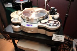 ステラヴォックスでは自社開発ブランド「TechDAS」(テクダス)を展開しているが、同ブランドのアナログターンテーブル「Air Force One」も出品。2012年発売予定だが価格は未定。ただし数百万円単位のプライスタグが付くことは間違いないだろう。ファイバー素材を用いたベルト駆動を採用しているという。