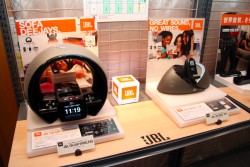 そのほかiPodやiPhoneとの組み合わせを想定した小型スピーカーやコンパクトコンポも出展。すでに発表されたものばかりだが、AirPlayに対応した「ON BEAT AIR」「ON AIR WIRELESS」に高い注目が集まり、実際に市場の反応も上々という。またiPhoneに対応しているだけでなく、CDプレーヤーも備えたコンポ「SAS101」も、実際の質感を確かめることが可能だ。