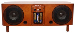 同モデルは国産カバ材を採用した美しい筺体に、ammラボ特製の8cmフルレンジユニットとデジタルアンプを搭載したもの。フロントパネルに配置されたミニ端子入力につなぐだけで、音楽が再生できるというものである。