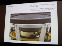 ダンパーには進化したロール形状を採用。低い歪みで必要な音圧レベルを確保するため、駆動系は巻き幅40mmのボイスコイルと厚さ12mmのトップレートを用いた設計とした。ストロークは通常値で「±15mm」、限界値は「±25mm」におよぶとのこと。