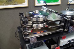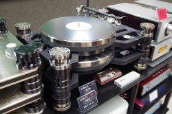 アナログレコード再生への注目度が高まるなか、TIAS会場でも特に注目を集めていたアナログ機器が、(株)トライオードのブース内でもひときわ目立つ、国内初登場のブランド・KRONOSのアナログプレーヤーだ。