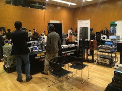 会場は、夢メッセみやぎの会議棟1階の大ホール、および2階。1階は大きな体育館ほどの広さのホールで、たくさんのメーカーがブースを出して多くの来場者に個別に案内を行っていた。2階はハイエンドオーディオルームは2つと、映像のデモルームとなっていた。