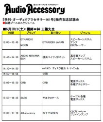 6月18日(土)に、現在好評発売中の最新刊『季刊・オーディオアクセサリー161号』の発売記念イベントを開催します。今回はその試聴会のタイムテーブルを発表します。