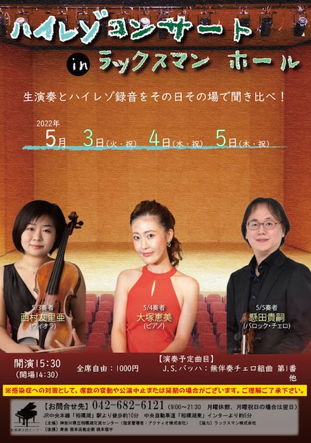生演奏をハイレゾ録音、その場で聴き比べるコンサート。ラックスマンホールでGWに開催