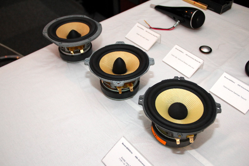 ケブラーコーン製の130mmミッドレンジユニット(手前)。奥がCM1、中央が686のもの。これまでのミッドレンジユニットのキャップから形状が変わったことがわかる