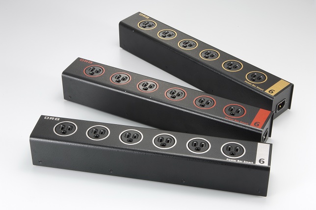 ORBの新型電源ボックス「Power Bar Smart シリーズ」。4口と6口モデルが用意され、それぞれにゴールド、ロジウム、メッキレスの計6モデルがラインアップ