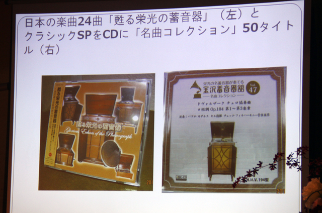 名曲のSPを、本館所有の蓄音器で再生した音源はCD化もされている
