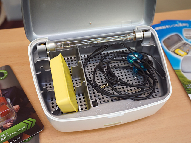 コンプライはイヤーチップに加えて、コンディショナーの「ドライ&ストア」も展示