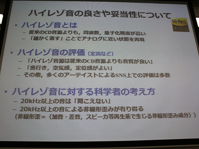ハイレゾの良さや妥当性は、「従来のCD音源よりもサンプリング周波数と量子化精度が細かいことによって、アナログに近い状態を再現できる」