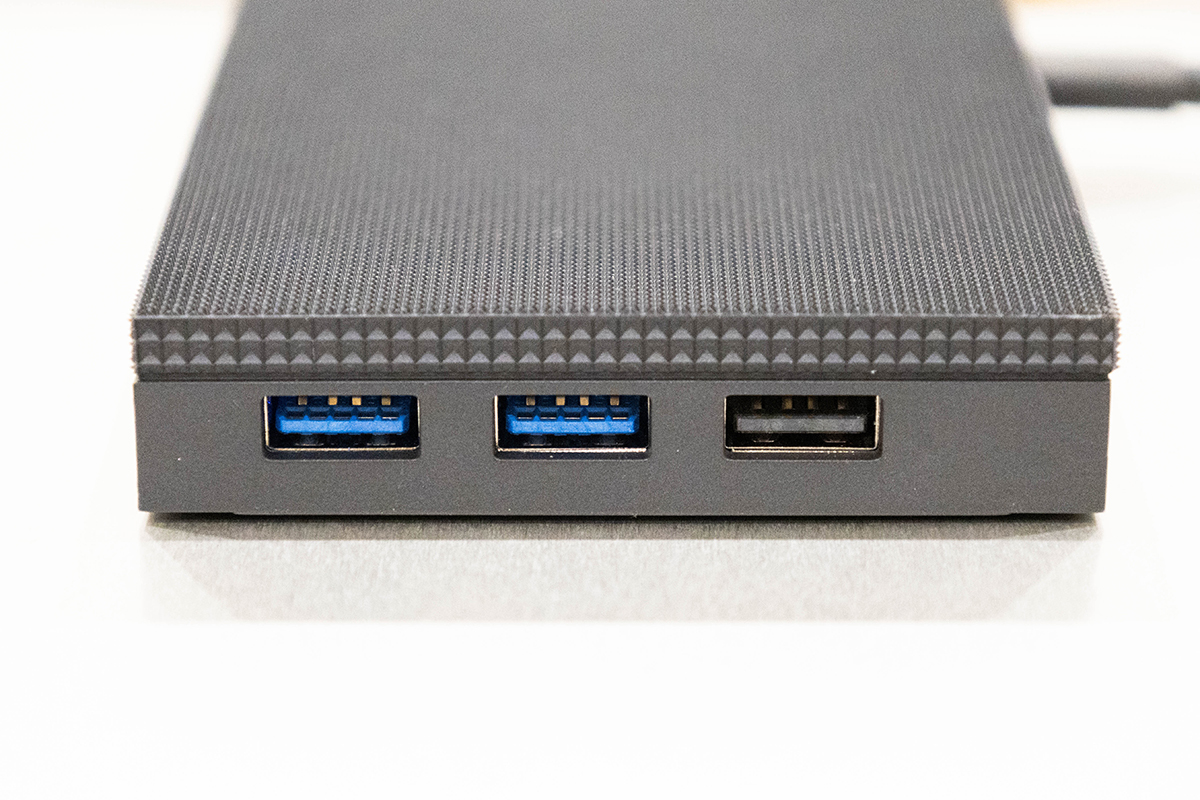 Nano Coreを横から見たところ。内側が青いのがUSB3.0対応、灰色のがUSB2.0対応で、DACには一番右のUSB2.0対応を接続するのがオススメ
