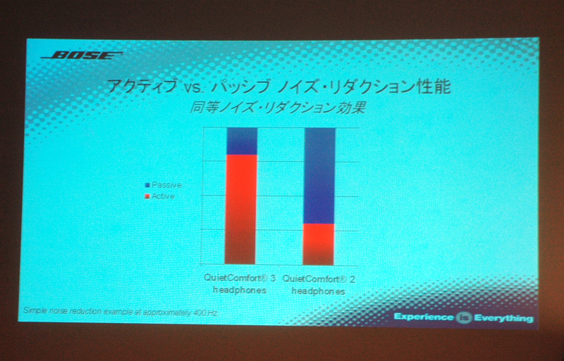 アクティブとパッシブそれぞれの消音効果について、QC2/QC3では機器の特徴に応じてバランスが取られた