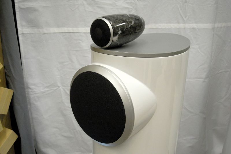 「ミニマリスト・ホワイト」カラーのトゥイーターキャビネットは大理石素材の質感をそのまま活かしている