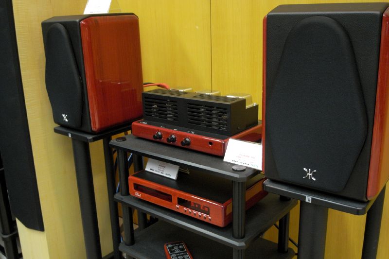 アンプ「FLAME RC」とプレーヤー「PRIDE」は予価26万5000円、スピーカー「CLUB」は価格未定。スピーカーのエンブレムがクルマっぽいのも洒落っ気か